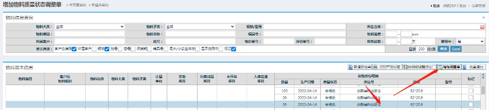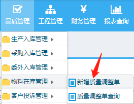 出货品检库存状态调整操作: 品质管理-物料在库管理-新增质量调整单