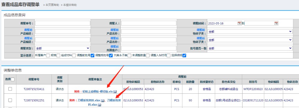 点击选择合格品,下面备注栏上传品检报告,点击提交完成 完成后进入品质管理-物料在库管理-质量调整单查询
