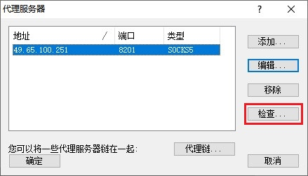 4) 在“代理服务器”对话框中,单击“检查”按钮。