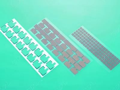 绝缘胶类辅料 作用说明:实现电子元器件之间隔离/联通和绝缘/导电作用,以避免相邻的部件间发生短路,引起故障。常见的导电绝缘类功能性器件有PC片、PET片、绝缘纸、麦拉片、绝缘胶带、导电布、导电胶等。 散热类功能性器件辅料