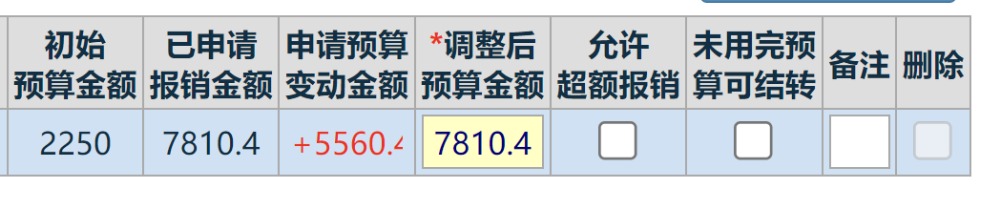 ![]() 把报销金额填进去,余额变小了。 ![]() 看清楚了,是调整后预算金额。调整后预算金额=初始金额+变动金额。 例如初始2250,第一次预算调整输入3000,此时预算增加了750,并不是预算增加3000,第二次调整想要把报销金额2500加进去,调整后预算金额应该填5500。 该文章在 2024/6/27 9:22:23 编辑过 |