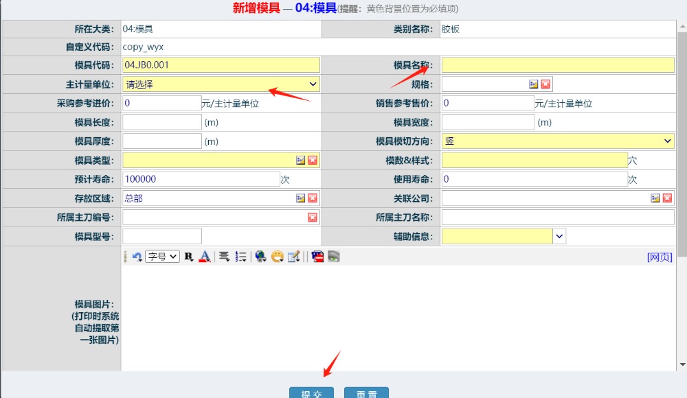 进入界面后,填写好相应的信息,点击提交完成操作 ![]() 点晴模切ERP更多信息:https://moqie.clicksun.cn,联系电话:4001861886 该文章在 2024/9/18 16:46:23 编辑过 |