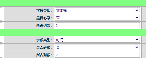 ![]() 不能,这里的文本类型跟数据库表的字段类型是一致的。时间类型无法保存文本类型。 数据库字段维护页面只能维护10个固定类型的自定义字段,如果需要更多字段,可以用自定义表单功能。