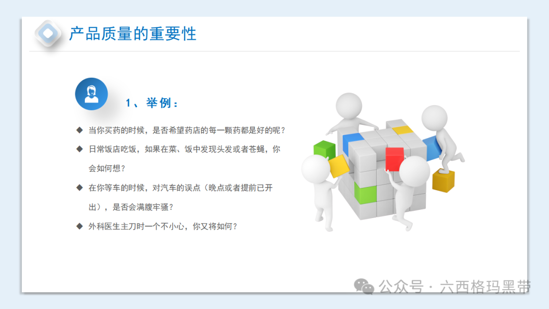 在我们的日常生活中,质量无处不在。试想一下,如果战场上士兵使用的枪械出现故障,如果跳伞时降落伞无法打开,如果驾驶的汽车转向失灵,如果购买的月饼中有苍蝇,如果游乐园的过山车存在安全隐患……这些情况的发生,无疑会给人们的生命安全和生活质量带来极大的威胁。而在工作中,我们却常常忽视质量的重要性,持有一种双重标准——生活上追求零缺陷,工作上却马马虎虎。要知道,1%的错误可能导致100%的失败。因此,我们必须深刻认识到产品质量的重要性,将其放在工作的首位。