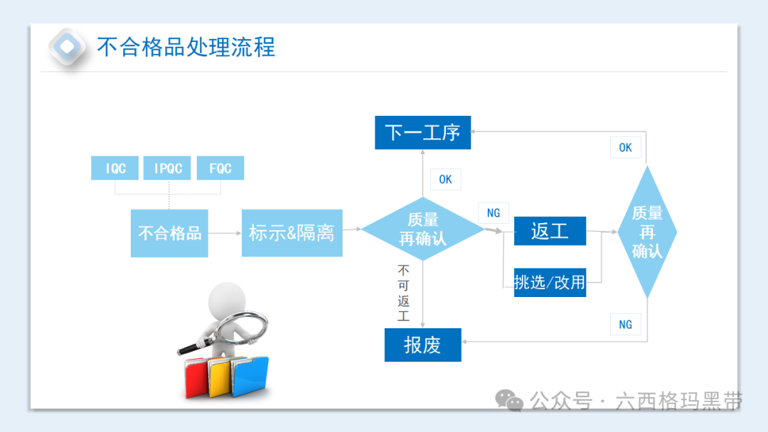质量管理的五不放过原则是我们必须遵循的准则:原因找不到不放过,责任分不清不放过,纠正措施不落实不放过,纠正措施不验证不放过,有效措施不纳入不放过。制造单位过程质量管理的四不政策同样重要:不收不良品,不做不良品,不流不良品,不出不良品。在质量异常处理和不合格品处理流程中,我们要严格按照规定操作,确保每一个环节都不出问题。