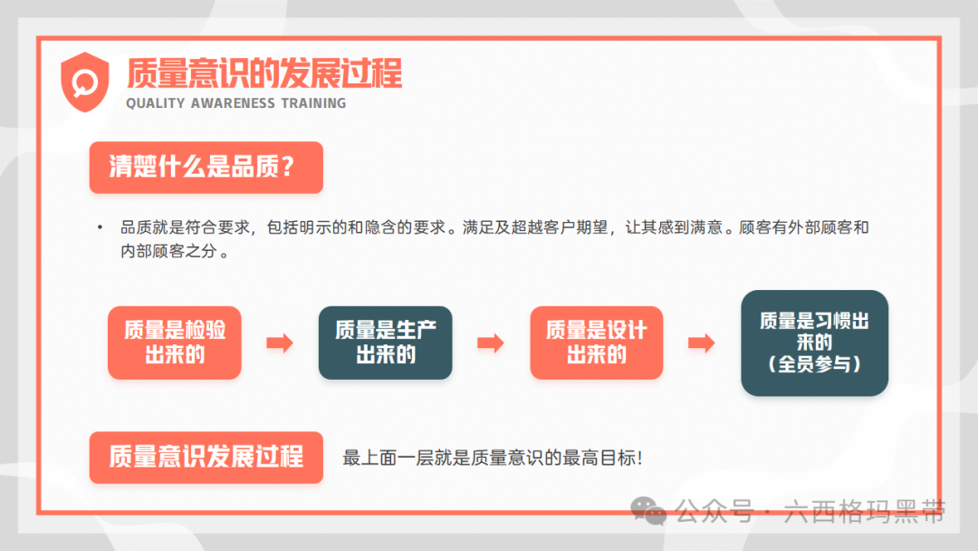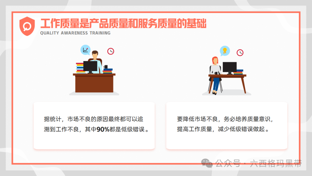 质量意识是指员工对质量的认识、态度和价值观,它直接指导着员工在日常工作中的行为选择。一个拥有强烈质量意识的员工,会自觉地将高质量标准融入到每一项工作中,从源头上减少质量问题的发生。质量意识是企业文化的重要组成部分,它体现了企业对质量的重视程度和对顾客需求的关注。