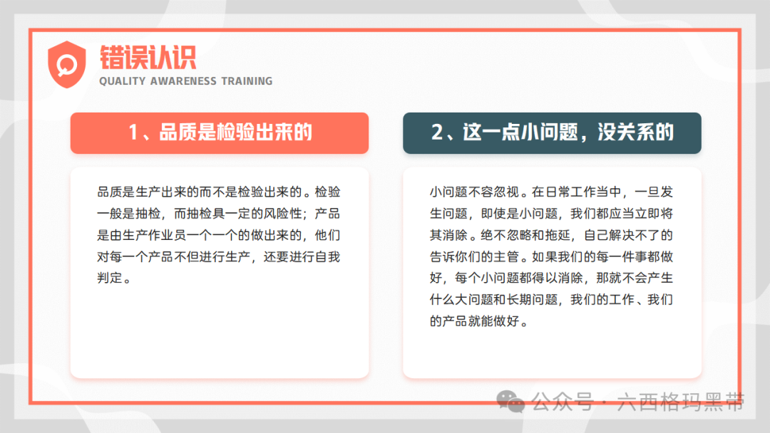 零缺陷原则强调“第一次就把事情做好”,即要求员工在生产过程中严格遵守质量标准,确保每个环节都不出错。这一原则要求员工具备高度的责任心和敬业精神,以零缺陷为目标,不断提升自己的技能水平。