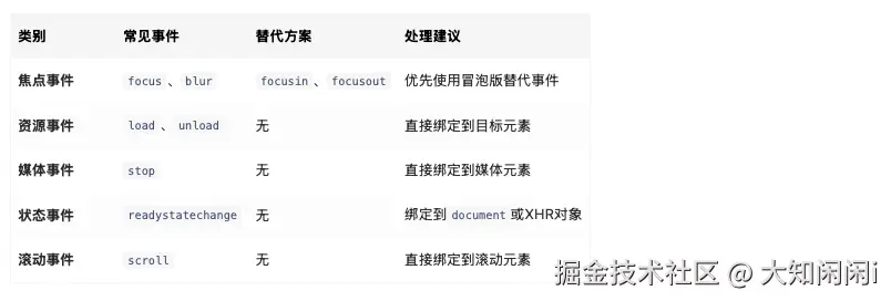 掌握这些特性,能帮你在事件委托、资源监听、焦点管理等场景中避开陷阱,写出更健壮的前端代码。