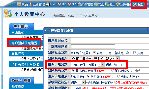 3、首页桌面的内容因为有右边的高级显示项目,所以很难做成自适应的效果,宽屏电脑用户可以自行在以下位置设置需要显示的列数的: