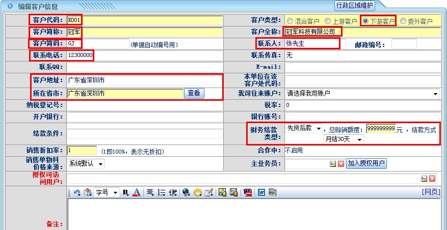 操作步骤:系统管理——客户管理——新增客户;进入页面如下图操作: 点晴模切ERP更多信息:https://moqie.clicksun.cn,联系电话:4001861886 该文章在 2025/9/30 9:05:15 编辑过 |