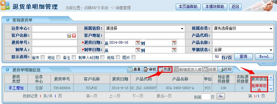 点晴模切ERP销售退货单管理流程—反审.作废销售退货单