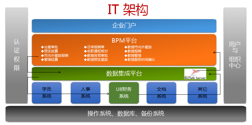 项目价值:1.建立企业统一数据中心,预算分析更准确;与财务系统、ERP系统等各业务系统紧密集成,当业务发生时能尽早及时的体现在预算上,消除业务与预算脱节情况。2.预算控制贯穿各个业务环节,预算使用情况实时掌握;对各项业务实行严格、规范的申请、审批流程,满足预算部门对内部费用控制的需要,避免预算超支,加强对资金的控制。3.PC、手机、Pad多终端处理报销业务;随时随地进行发起流程、审批流程、进度追踪等操作,大幅提升员工工作效率。4.适时调整预算,灵活应对经营变化;当经营环境或企业内部情况发生变化时,企业可以进行预算调整,所有调整都保持痕迹,可以随时查询历史调整情况。5.有效分析预算执行情况;通过报表门户可以查询费用预算的执行情况,出具种类统计报表,并进行多角度(产品/项目/部门)、周期灵活(年/季/月)的预算执行分析和评价,为绩效考核提供依据。 案例二背景:上海市人民政府为实现将上海建设成为国际金融中心的国家战略、满足上海乃至全国金融业发展并与国际接轨的迫切需要,依托上海交通大学而创建的一所按照国际一流商学院模式办学的金融学院;学院培养金融MBA(工商管理硕士)、金融EMBA(高级管理人员工商管理硕士)、全球金融DBA(工商管理博士)、金融硕士、金融学博士、EDP(高层管理教育)等高人才;实施包括:费用控制、人事、行政在内的16支流程;项目重点:预算控制、流程之间数据关联性、与BizTalk的整合、与U8整合、与Portal集成。