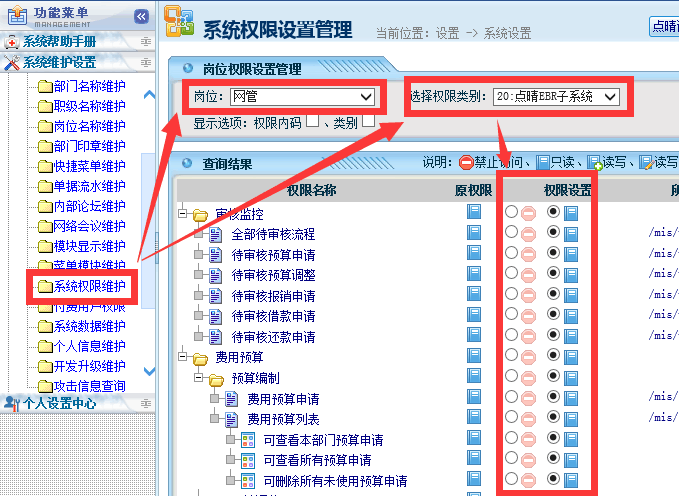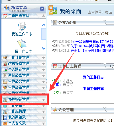 ![]() 然后开启各个相关岗位需要使用的权限: ![]() ![]() 分配好权限后,相关用户就可以看到预算报销管理模块了: