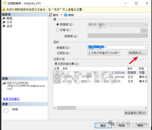 很多时候都会遇到一个经典事故:开发误删表/数据异常/程序写坏数据如果没有日志备份,基本只能:找昨天备份丢失一天数据但如果数据库开启了事务日志备份,事情会完全不一样。本文通过真实测试案例,完整演示:如何通过事务日志恢复数据库一、测试环境说明项目信息测试数据库服务器10.10.10.26测试数据库xxx数据库全量备份每天凌...