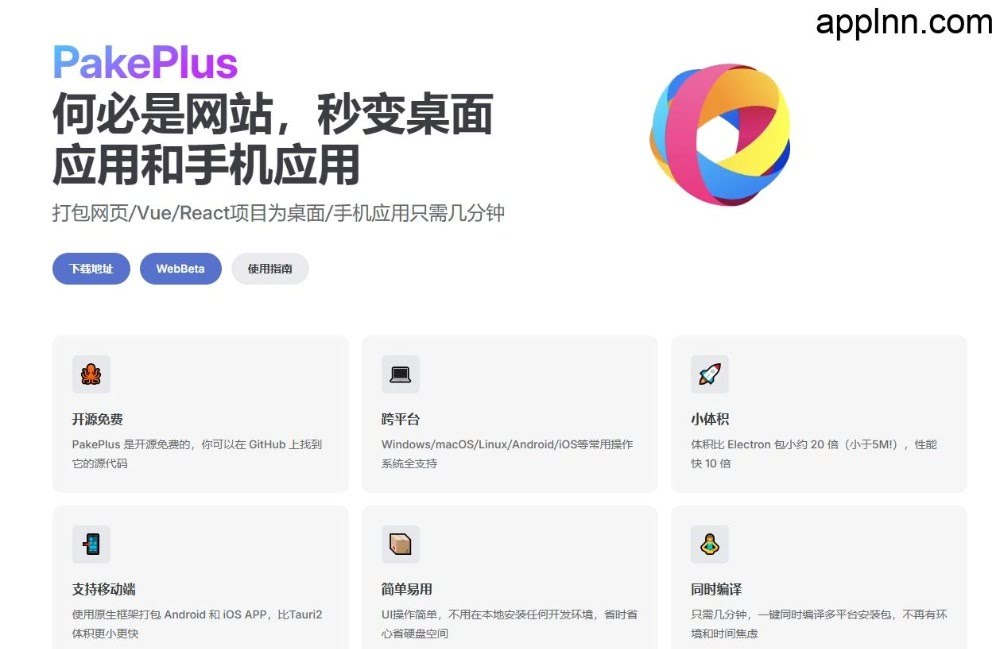 ✅PakePlus:跨平台打包工具,快速封装网页和前端项目为桌面应用!简介介绍在现代软件开发中,将网页或前端项目快速封装为桌面应用的需求日益增长。PakePlus正是为了解决这一需求而设计的。它是一个强大的跨平台打包工具,能够将任意网页或前端项目(如Vue、React)快速封装为Windows、macOS、Linux...