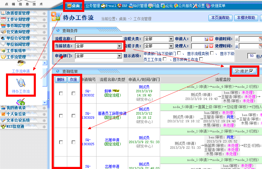 点晴OA系统工作流&考勤中请假已经审核通过,请问如何撤回/删除/作废呢?点晴OA系统工作流&考勤中请假已经审核通过后,是不允许用户自行作废的。可以通知管理员,管理员可以强行作废已经审核通过的考勤申请。如果是考勤类的工作流申请,那么必须以网管身份进入点晴OA系统-》业务管理-》人力资源管理-》考勤管理,打...
