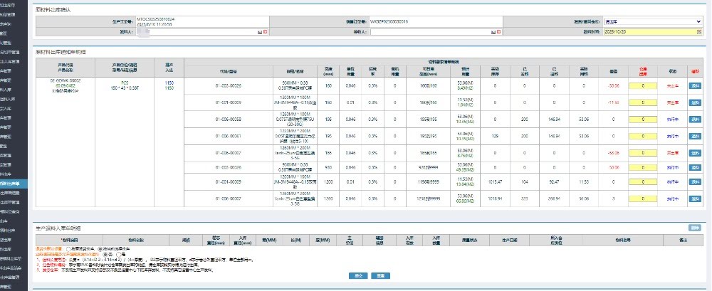 进入界面后,点击对应的工单号进入查询领料情况在弹出的页面窗口可以查看到对应的出库明细清单,其中有一栏出库批号方法2:操作步骤:仓库管理-物料流向管理-物料出入库管理明细