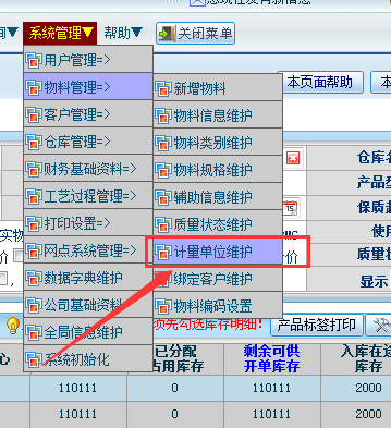 操作步骤:系统管理-物料管理-物料信息维护: