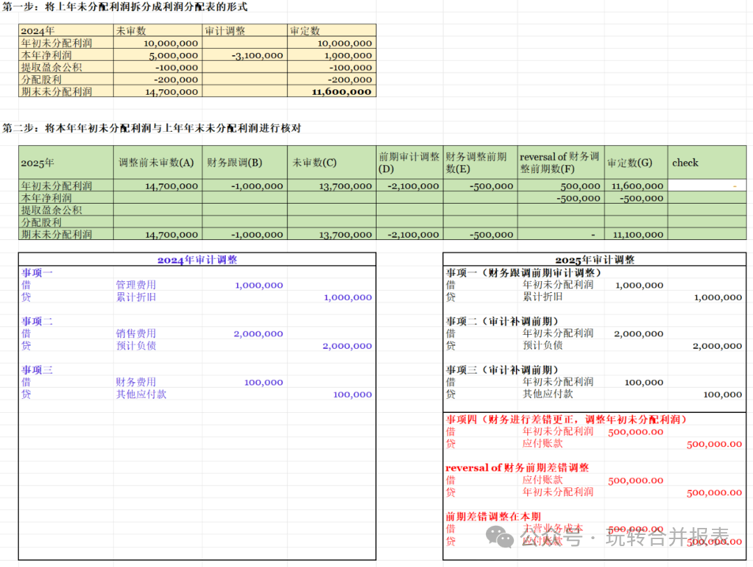 核对年初未分配利润是预审的一项重要的工作,前段时间有同学问,有没有核对年初未分配利润的模板?一方面试算平衡表中年初未分配利润与本年利润都放在了未分配利润不方便核对;另一方面中期的时候,财务与审计都稀里糊涂也做了前期差错更正,各种问题搅在一起,tie年初未分配利润倒是成了一件困难的事。这篇文章用一个简易模板介绍如何核对年...