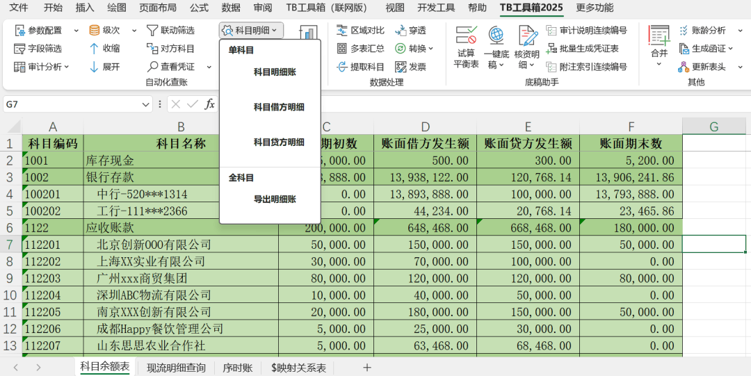 通过序时账生成现金流量表,其实很简单!一、主要思路1.首先,通过序时账筛选出库存现金和银行存款涉及的分录,进而获取现流明细表;2.接着,在现流明细表增加一列,根据业务性质判断并填充每一笔明细对应的现流主表项目;3.最后,按主表项目汇总金额,即可生成现金流量表。为了进一步提升审计效率,“TB工具箱”提供了一套完整、系统的...