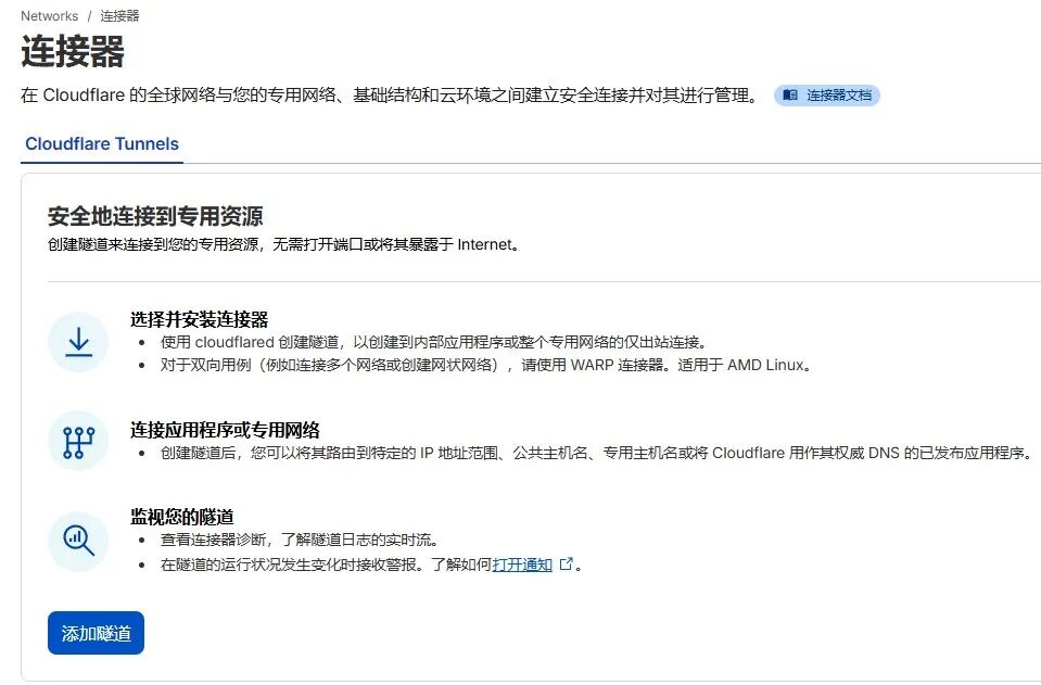 前言我家里的内网穿透用的是lucky+ddns的方案,主要依赖于公网IPv6,但是公司的破网没有IPv6,CloudflareTunnel应该是目前零成本方案中最安全稳定的,无需公网IP、不用端口映射、不暴露路由器,唯一的缺点是国内访问比较慢,我只使用sunpanel这种页面类的服务,影响不大。但如果想穿透应用类的服务...