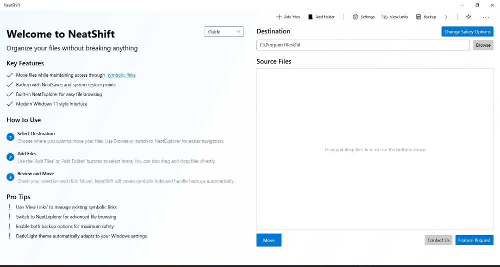 简介介绍NeatShift是一款现代化的文件迁移与整理工具,专为需要高效管理磁盘空间的用户设计。它能够将大型文件夹(如游戏、软件等)从系统盘无损迁移至其他磁盘,同时通过自动创建符号链接确保原路径不变,使程序依然可以正常运行。NeatShift以其无损迁移、符号链接、内置文件浏览器、拖放操作、集中管理、快速备份和系统还...